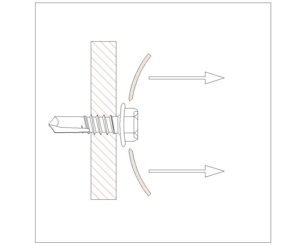 Le « pullover » correspond à la traversée ou arrachement de la feuille de métal par la tête de vis.